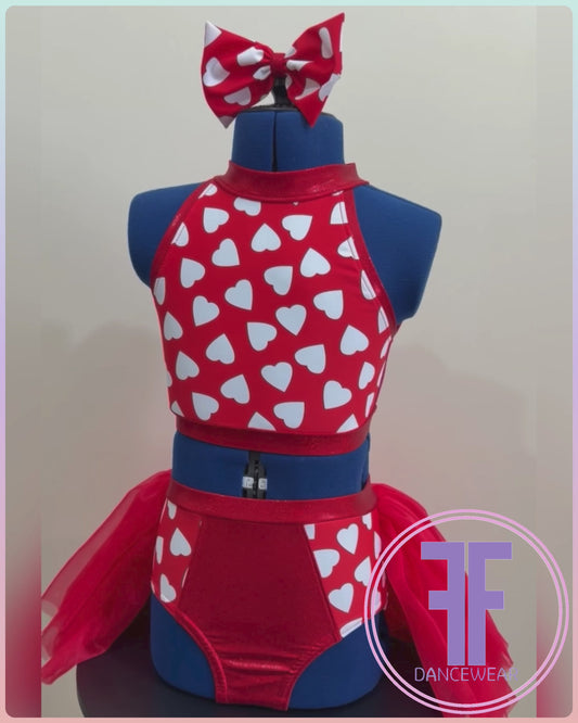 BESPOKE Red Hearts Modern / Tap Dance Costume (9/10 yrs)