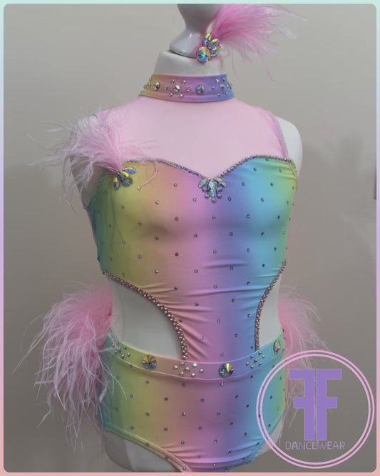 BESPOKE Pastel Rainbow Stoned Modern / Tap Dance Costume (11/12 yrs)