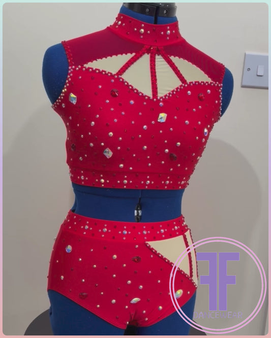 BESPOKE Red Stoned Modern / Tap / Acro Dance Costume (AS)