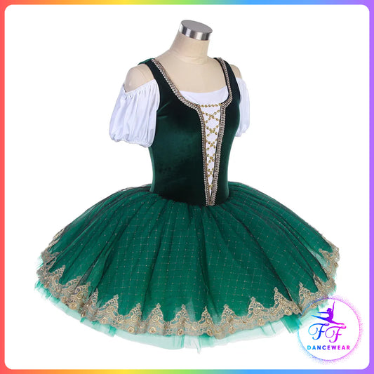 Green Velvet Cold Shoulder Style Bell Ballet Tutu (Child & Adult Sizes)
