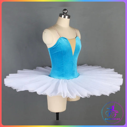 Turquoise Velvet & White Stretch Pancake Ballet Tutu