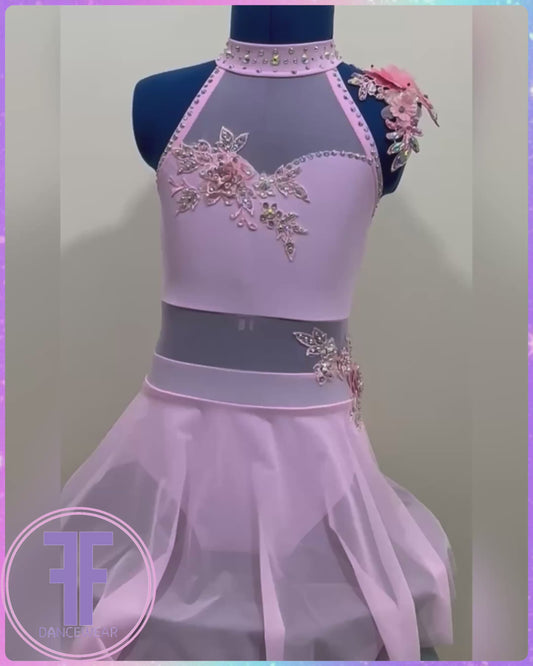 BESPOKE Pink Stoned Lyrical / Contemporary Dance Costume (11/12 yrs)