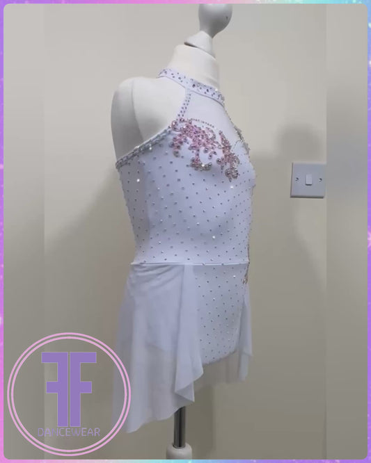 PRE-LOVED BESPOKE White Stoned Lyrical / Contemporary Dance Costume (Adult Extra Small)