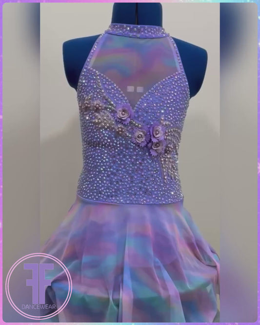BESPOKE Lilac Stoned Chiffon Lyrical / Contemporary Dance Costume Two Piece (Adult XS)