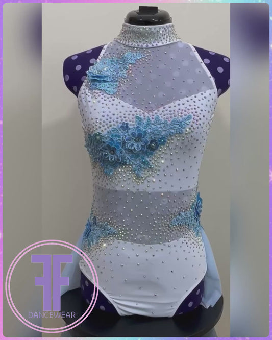 PRE-LOVED BESPOKE White & Blue Stoned Lyrical / Contemporary Dance Costume (Adult Small)