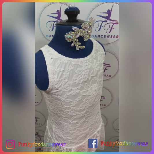 White Lace Bespoke Stoned Lyrical / Contemporary Dance Costume (Size 1 - 7/8yrs approx)