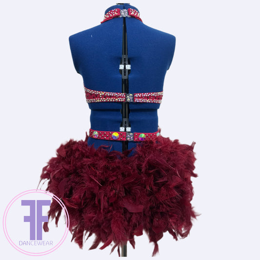 BESPOKE Burgundy Feather Bustle Stoned Modern / Tap Dance Costume (9/10 yrs)