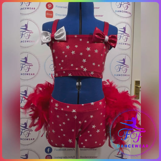 BESPOKE Red Metallic & Silver Glitter Star Modern / Tap / Jazz Dance Costume (Size 1 - 7/8 yrs)