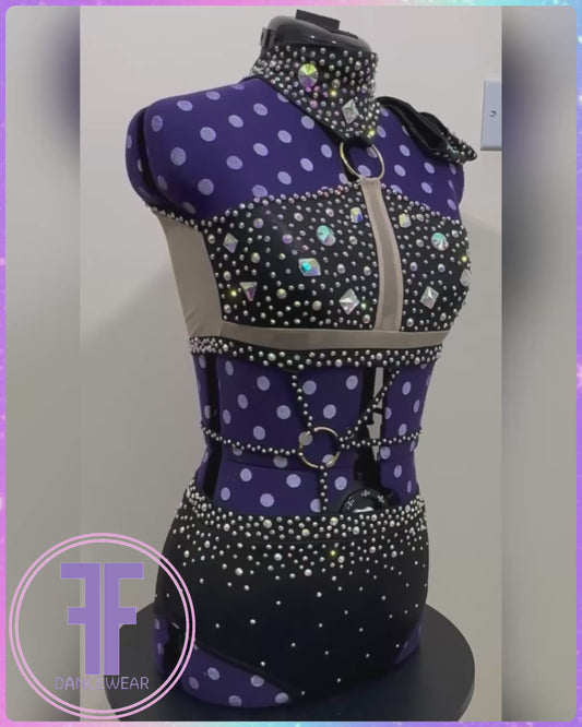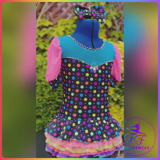 BESPOKE Neon Spots Stoned Modern / Tap / Jazz Dance Costume (Size 1 - 7/8 yrs)
