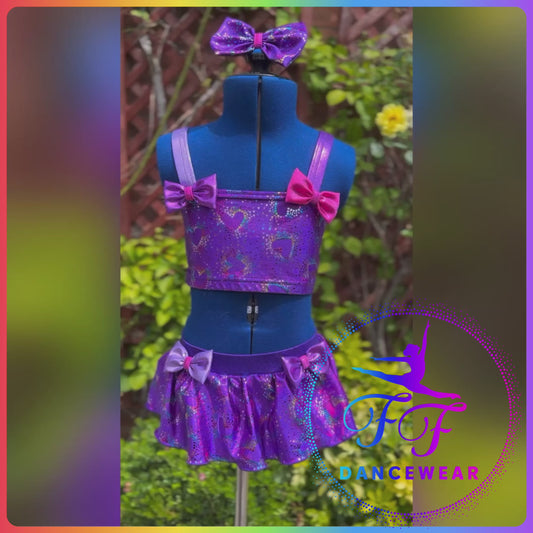 BESPOKE Metallic Purple and Rainbow Hearts Modern / Tap Dance Costume (Size 1 - approx. 7/8 yrs)