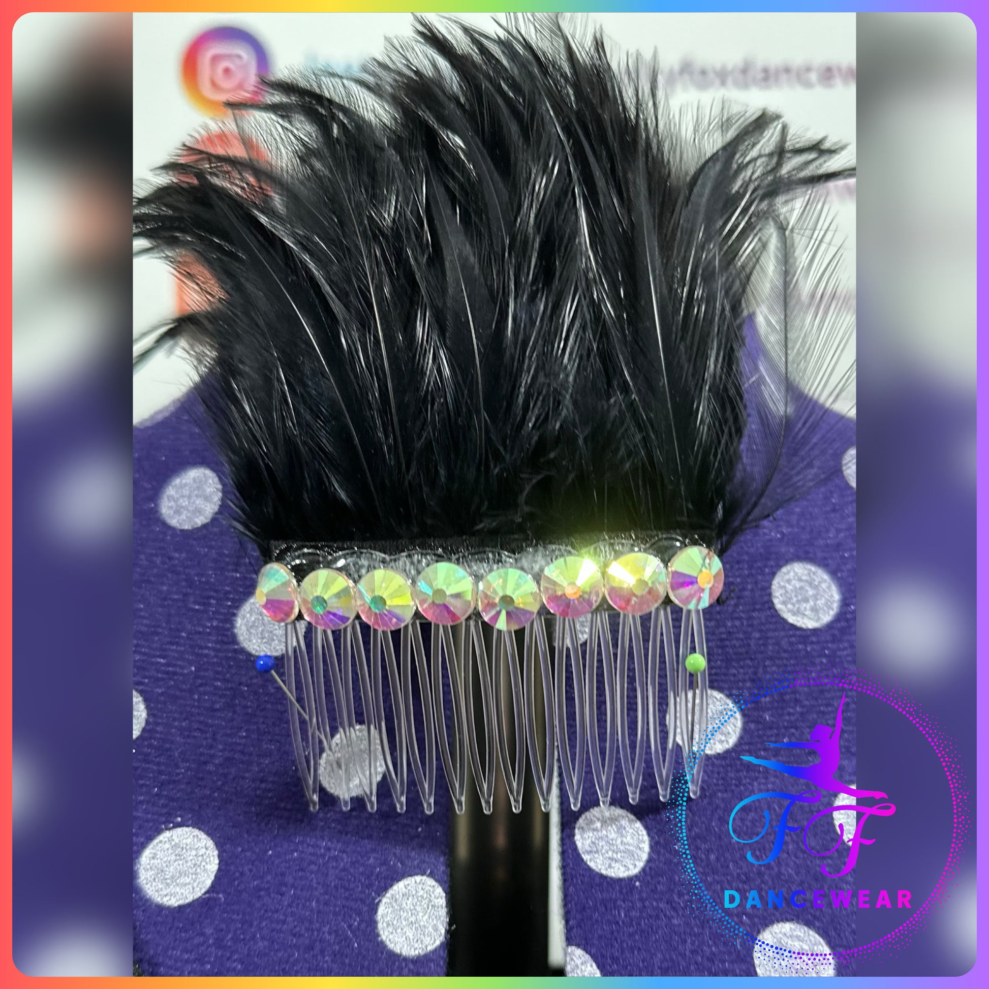 Decorated with superior quality crystals in AB. Also comes with matching stoned black hackle feather hair piece.