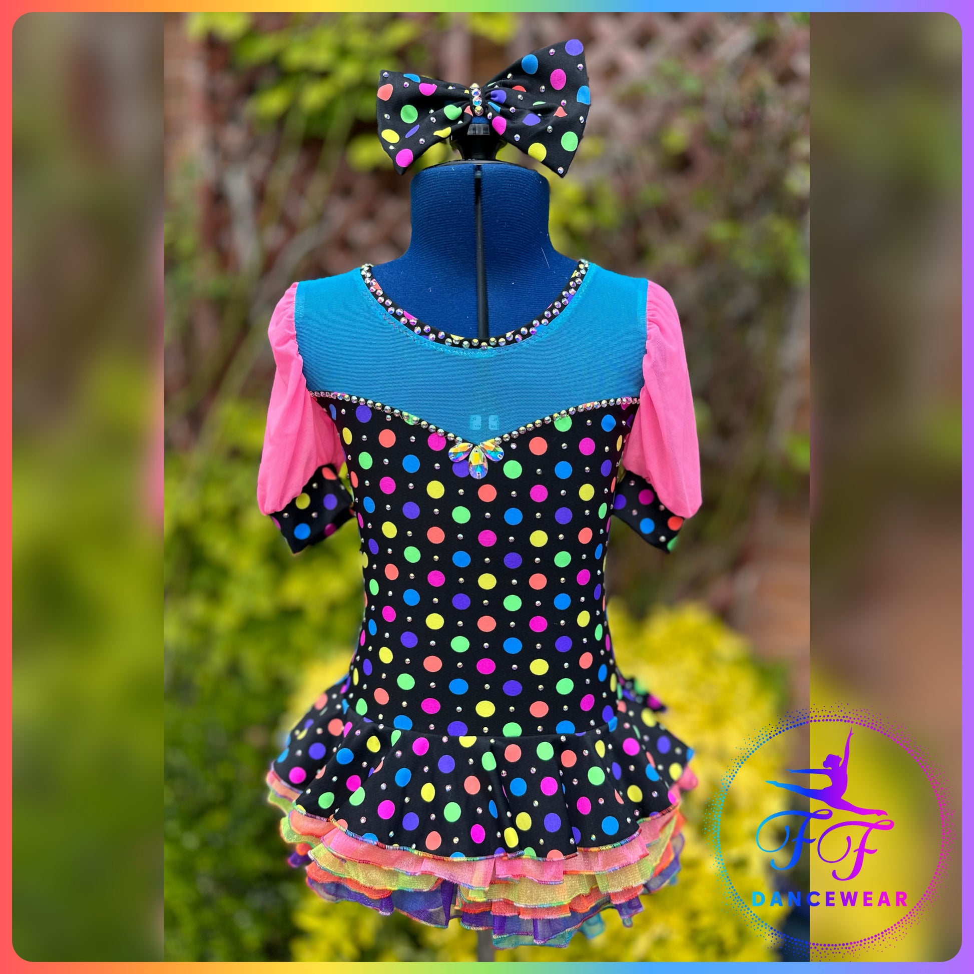 BESPOKE Neon Spots Stoned Modern / Tap / Jazz Dance Costume (Size 1 - 7/8 yrs)