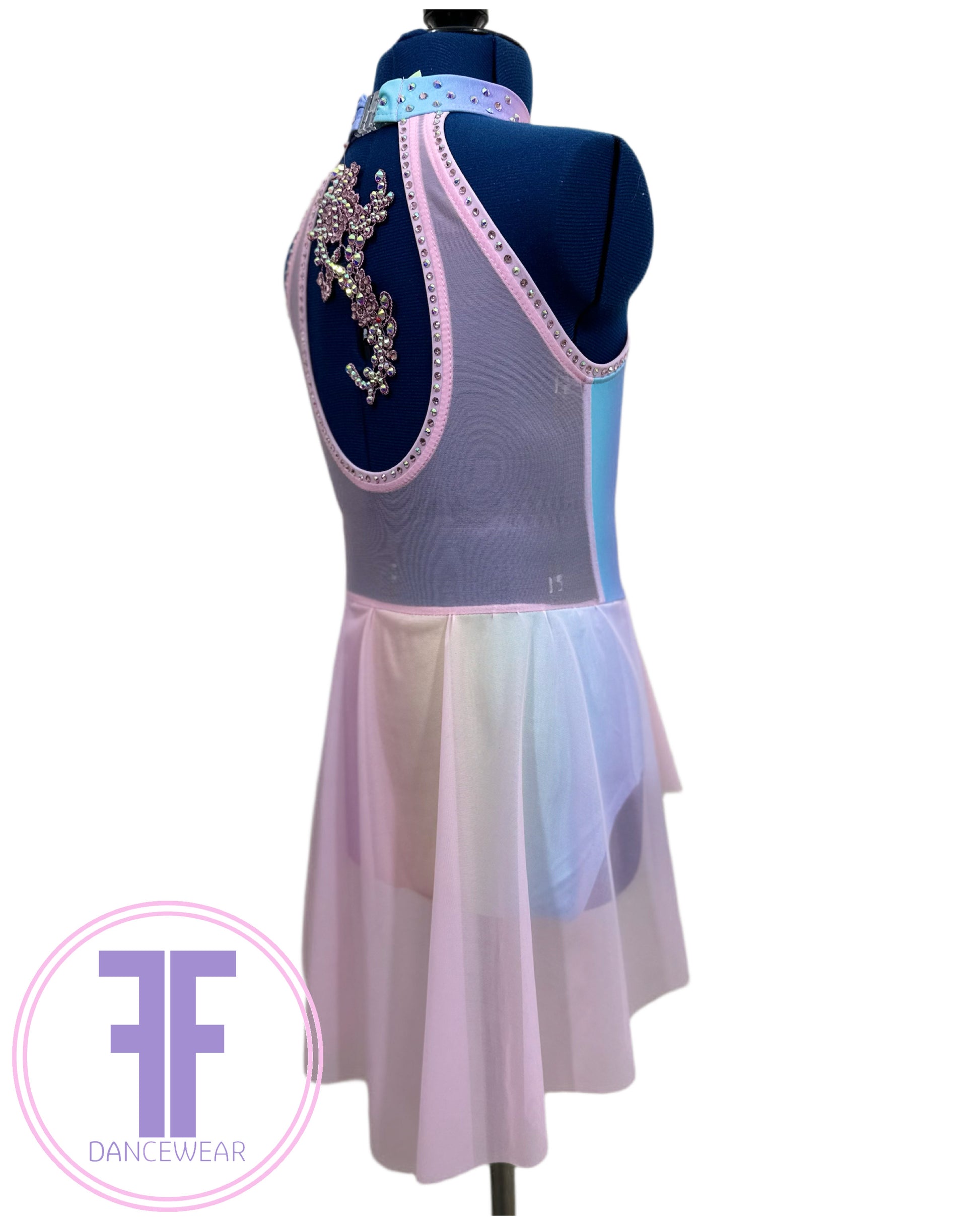 BESPOKE Pastel Rainbow & Pink Stoned Lyrical / Contemporary Dance Costume (7/8 yrs)
