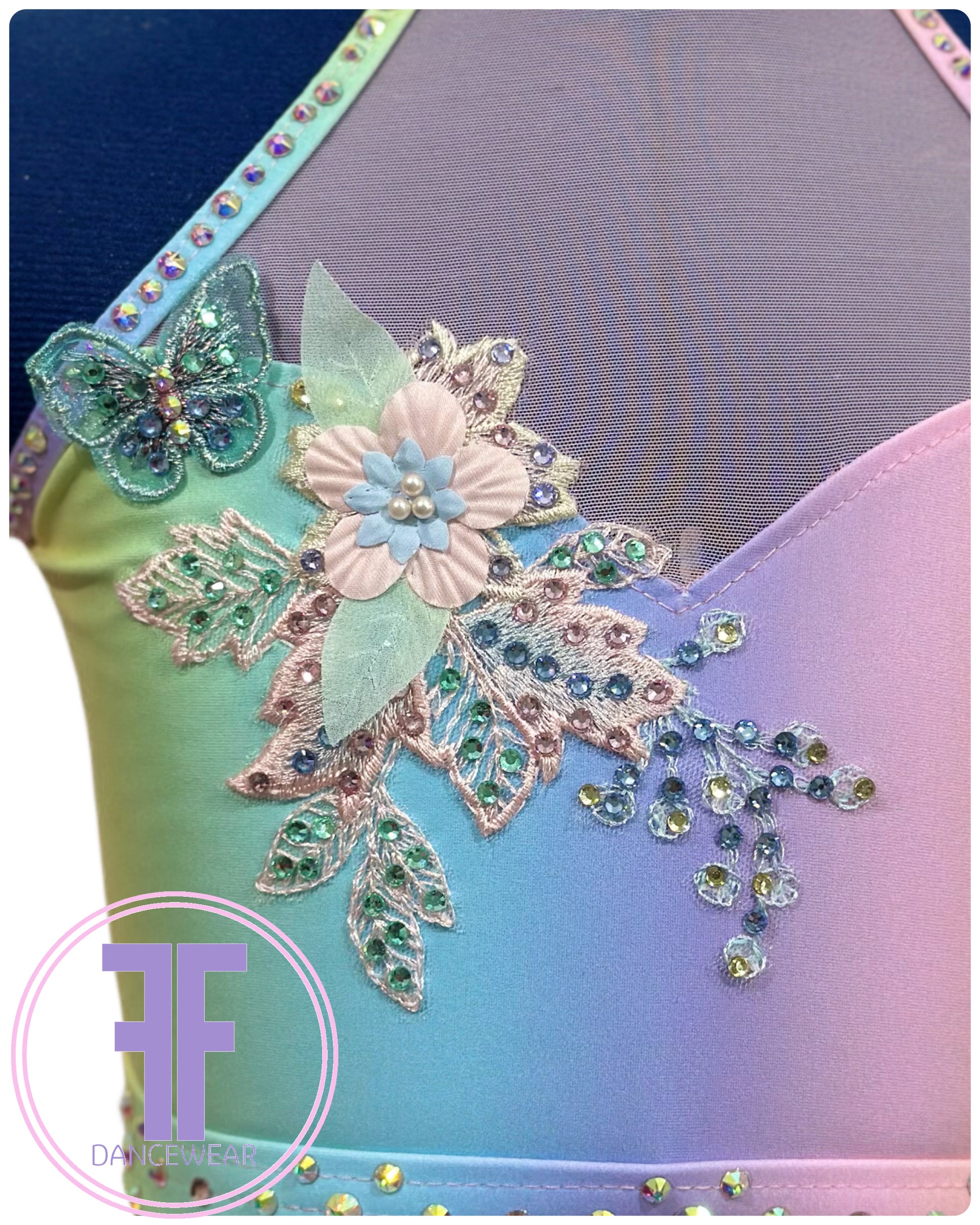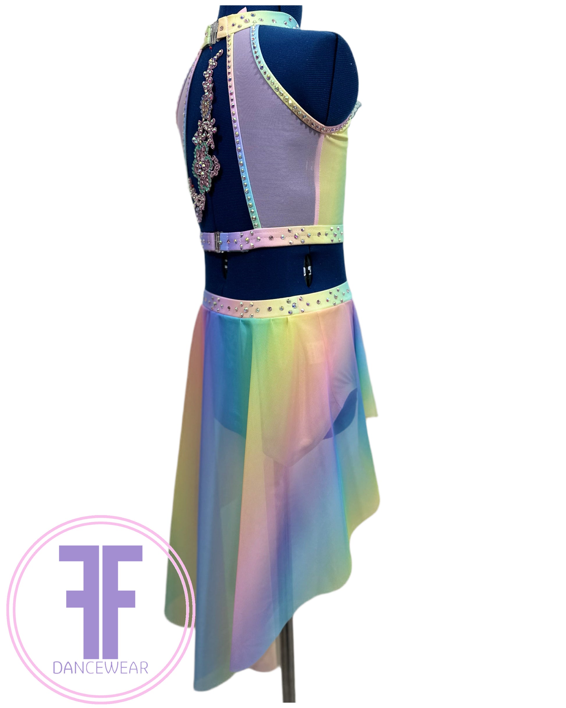 BESPOKE Pastel Rainbow Stoned Dance Costume for Lyrical / Contemporary (Age 7/8 yrs)