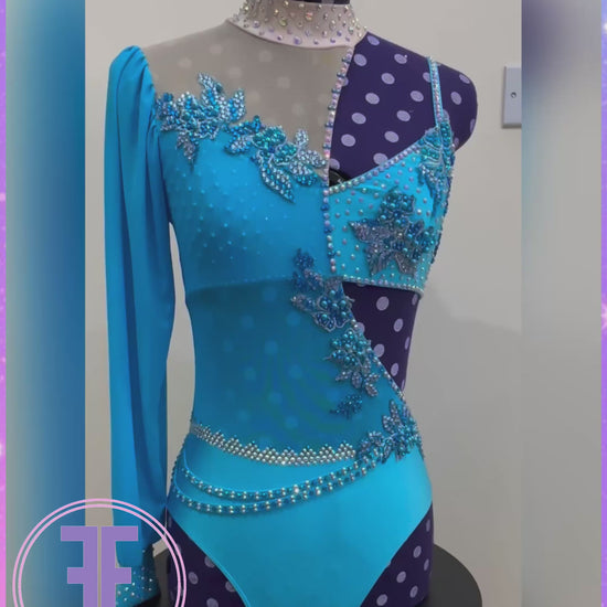 BESPOKE Turquoise Blue and Nude Stoned Lyrical / Contemporary Dance Costume (AS)