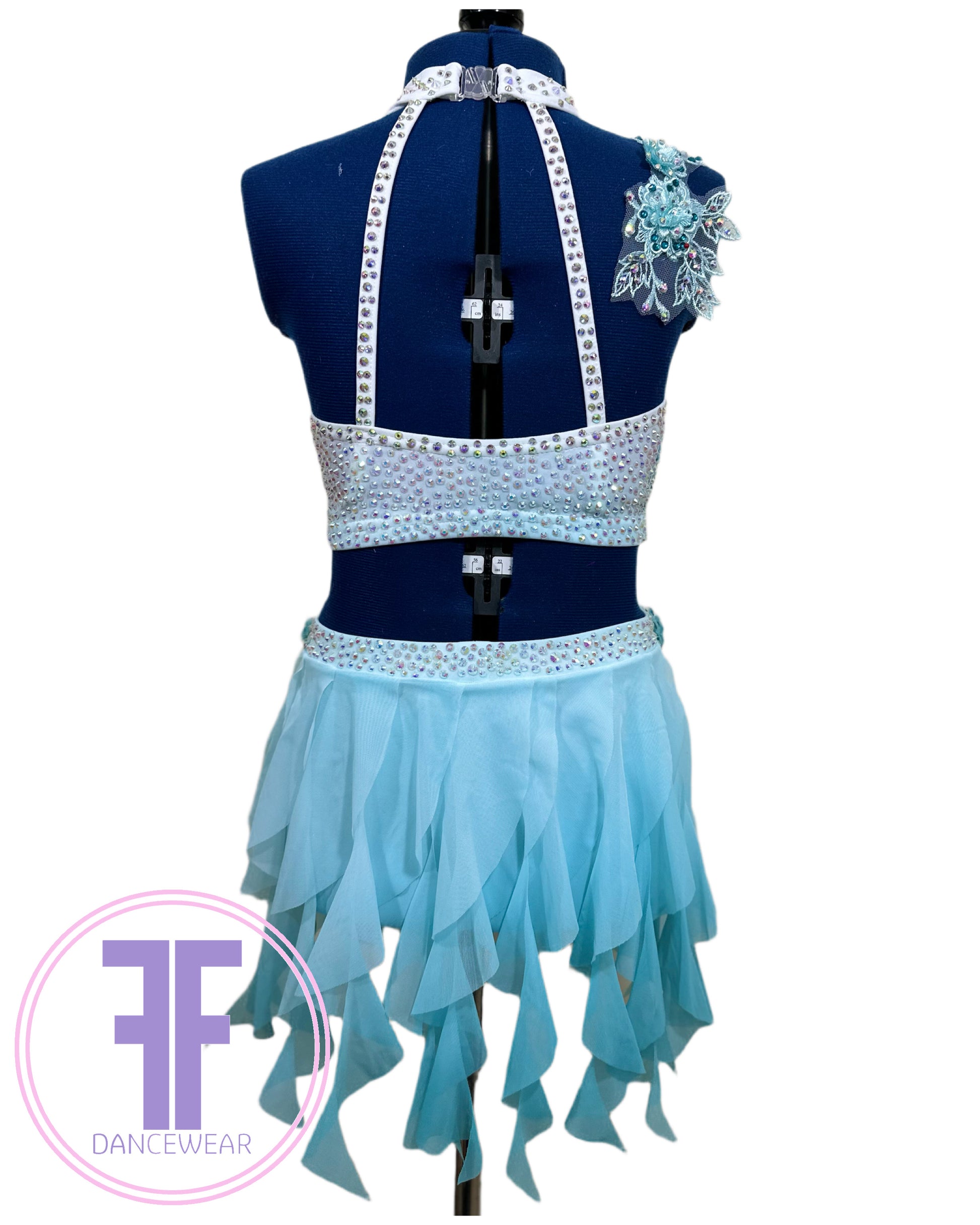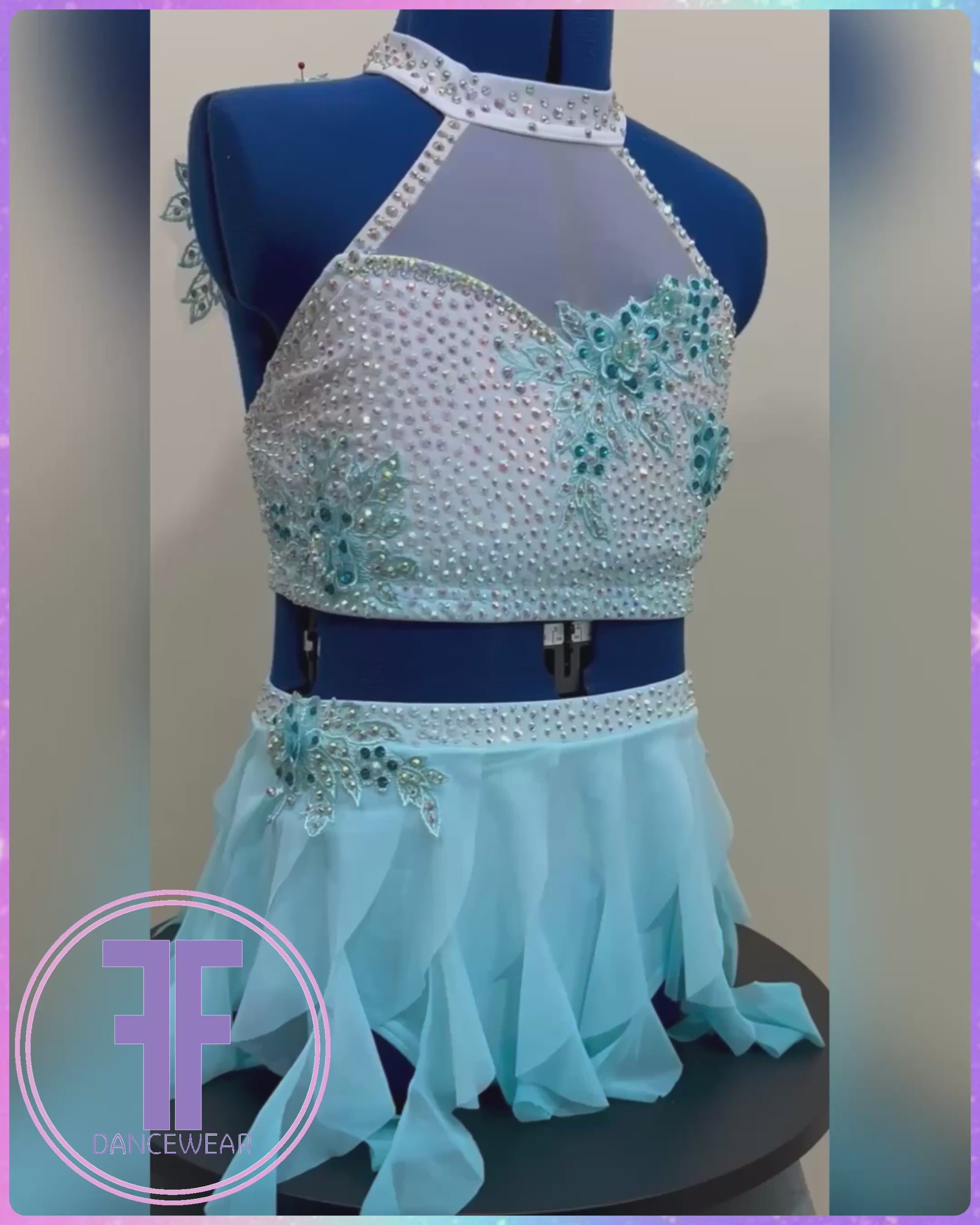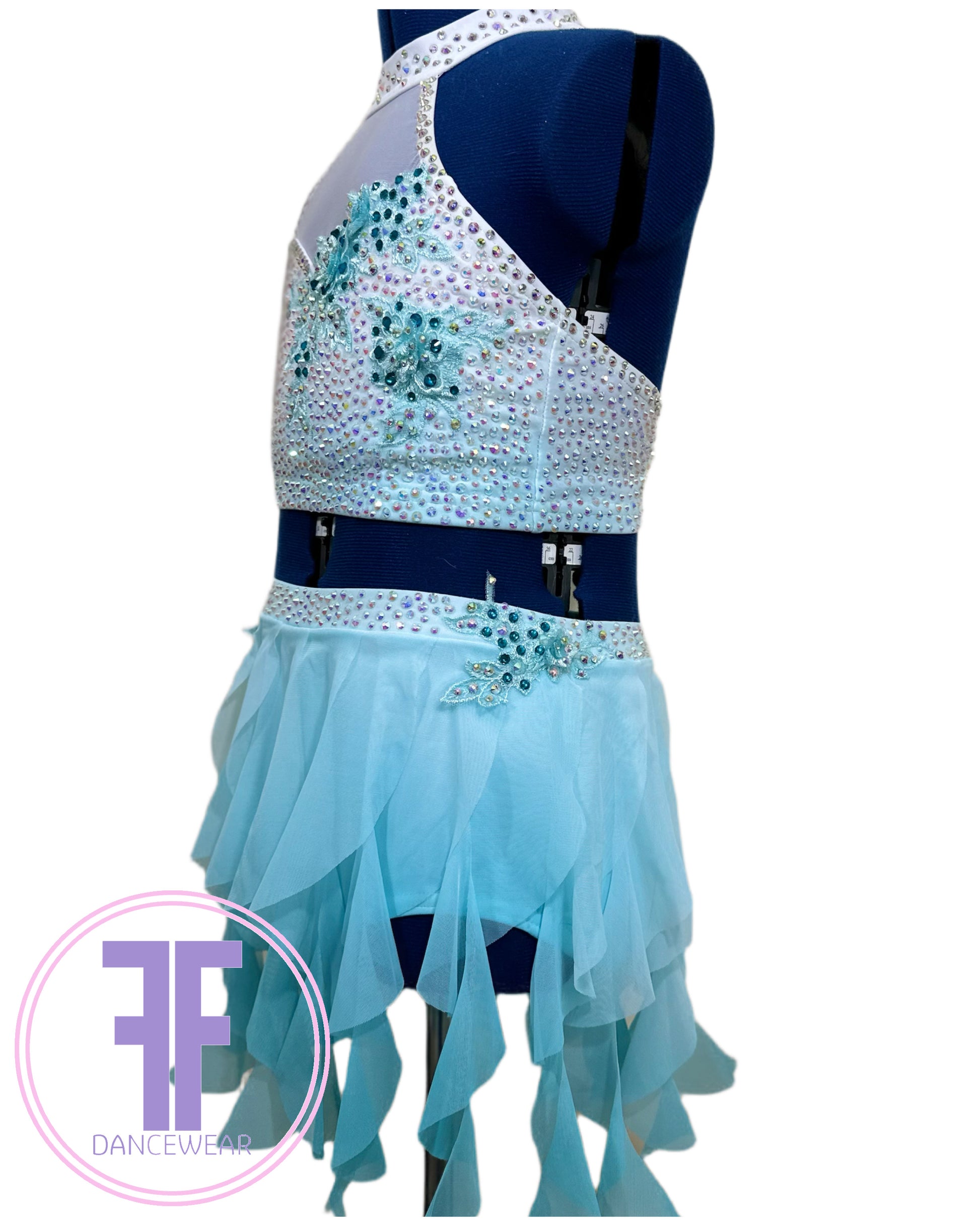 BESPOKE White & Teal Lyrical / Contemporary Dance Costume (9/10 yrs)