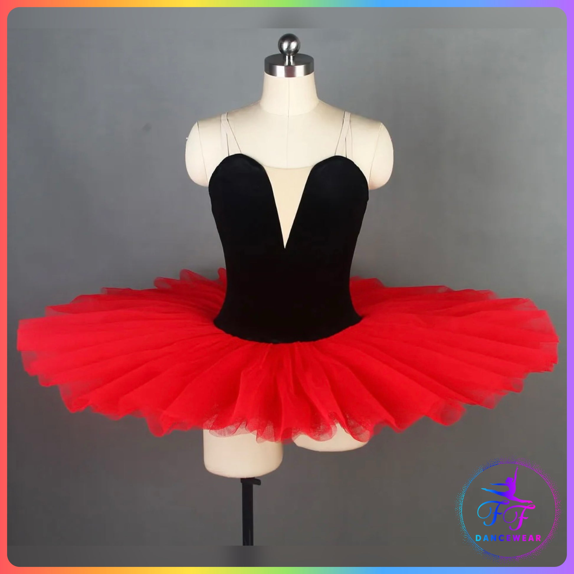 Black Velvet & Red Stretch Pancake Ballet Tutu