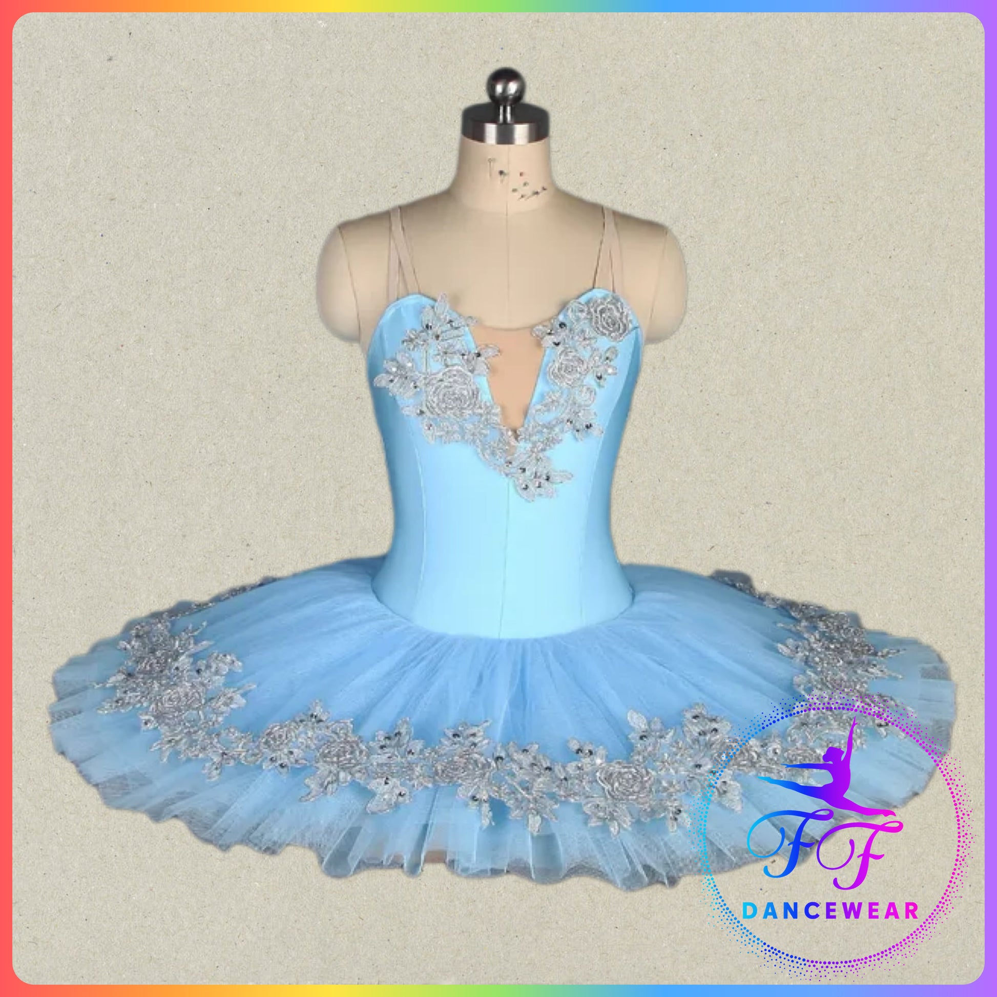 Blue Floral Trim Professional Ballet Pancake Tutu (Child & Adult Sizes)