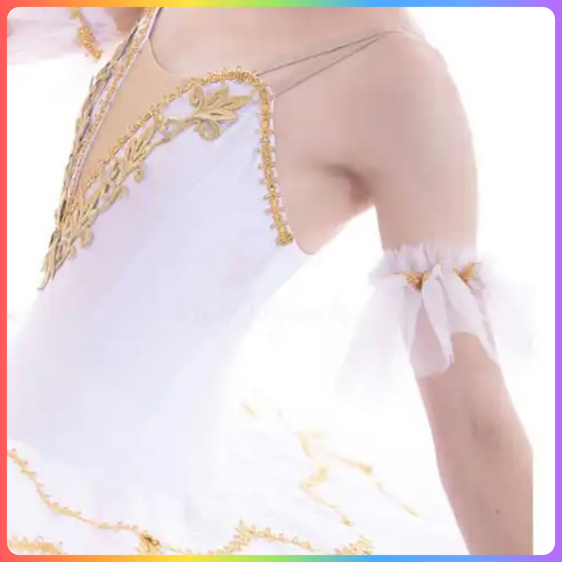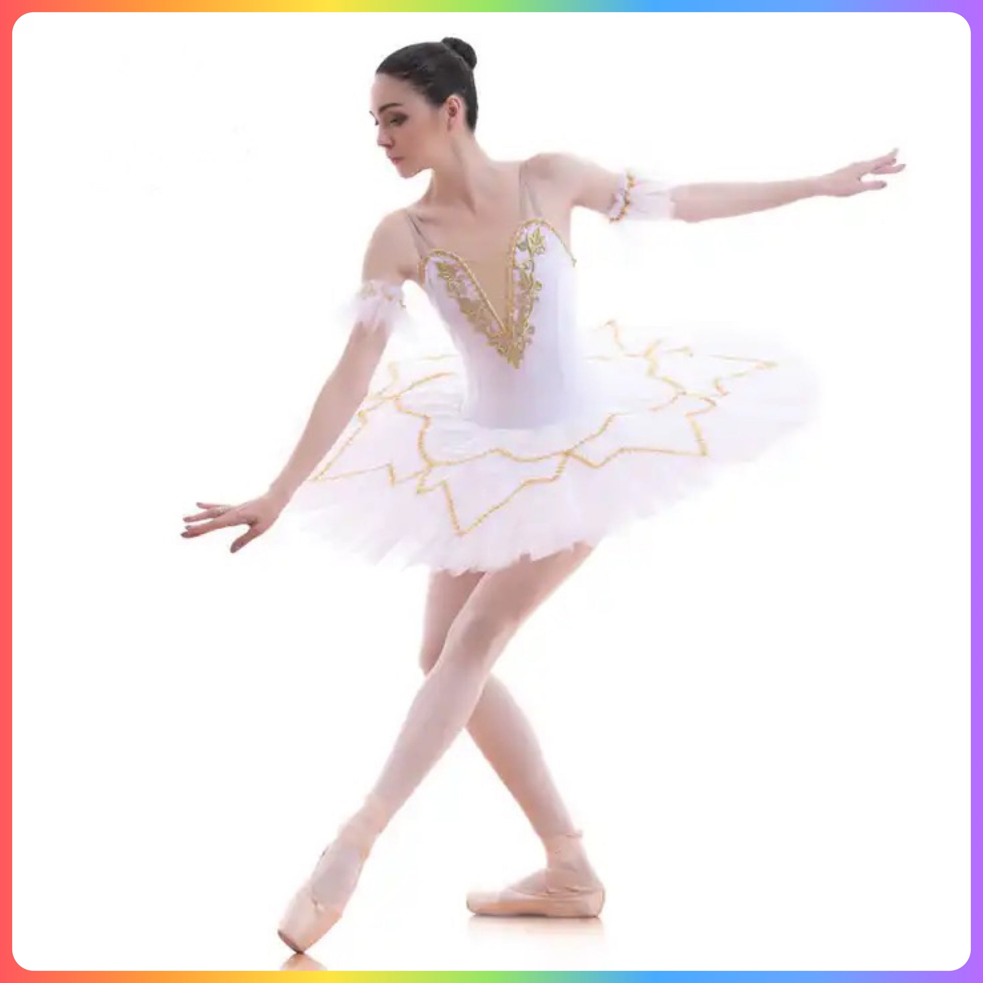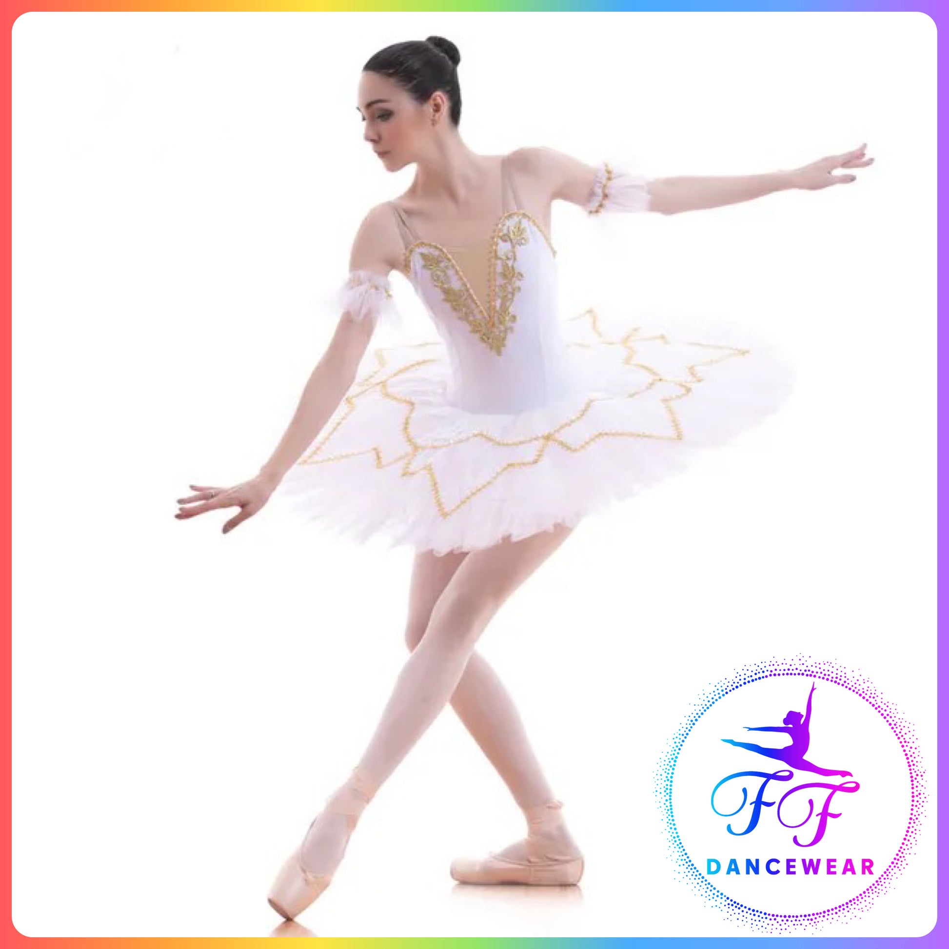 White Classical Gold Trim Professional Ballet Pancake Tutu (Child & Adult Sizes)