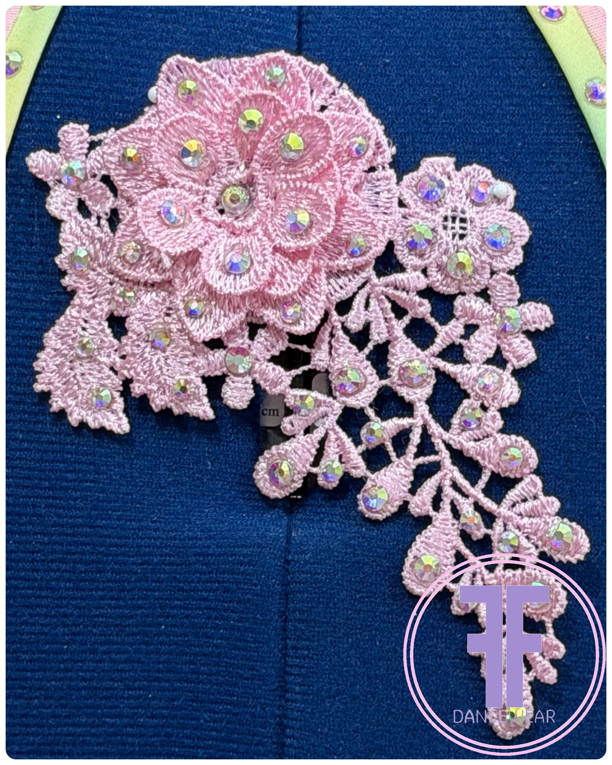 Open back crop top in Pastel Rainbow Lycra and Baby Pink Powermesh with sweetheart bodice design.