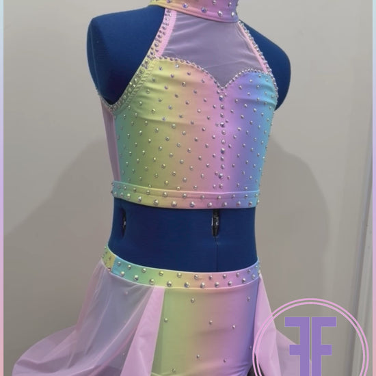 ELENA Pastel Rainbow & Pink Stoned Lyrical / Contemporary Dance Costume (7/8 yrs)