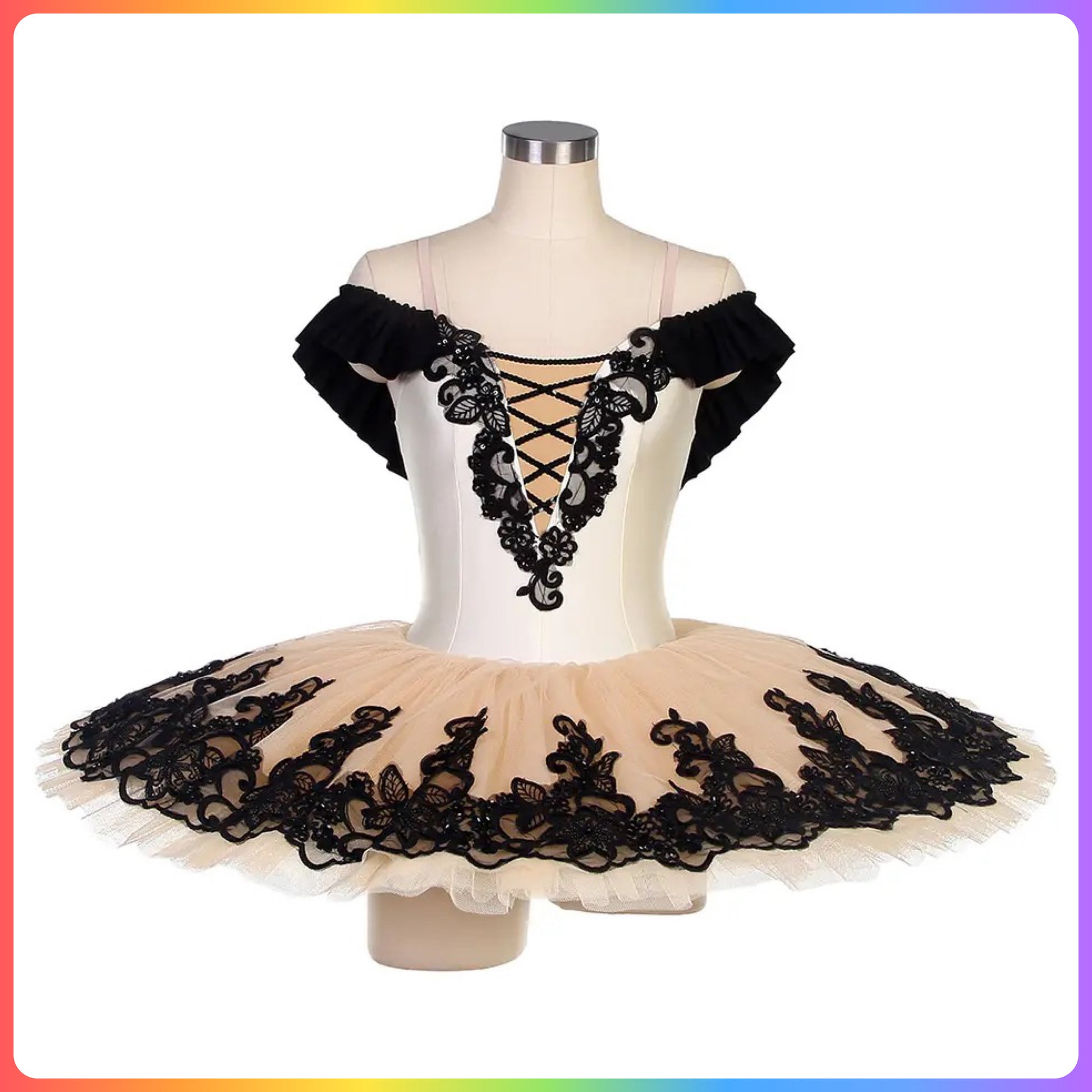 Ivory / White & Black Professional Ballet Pancake Tutu (Child & Adult sizes)