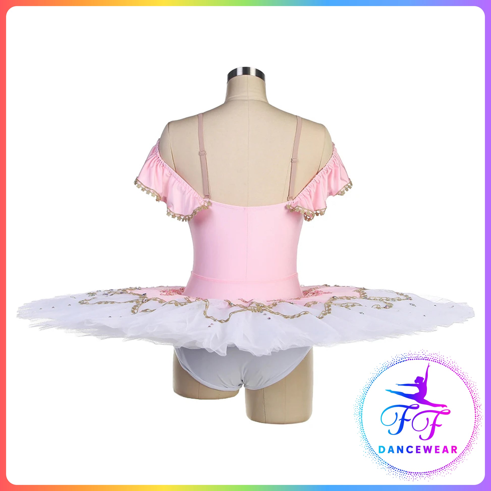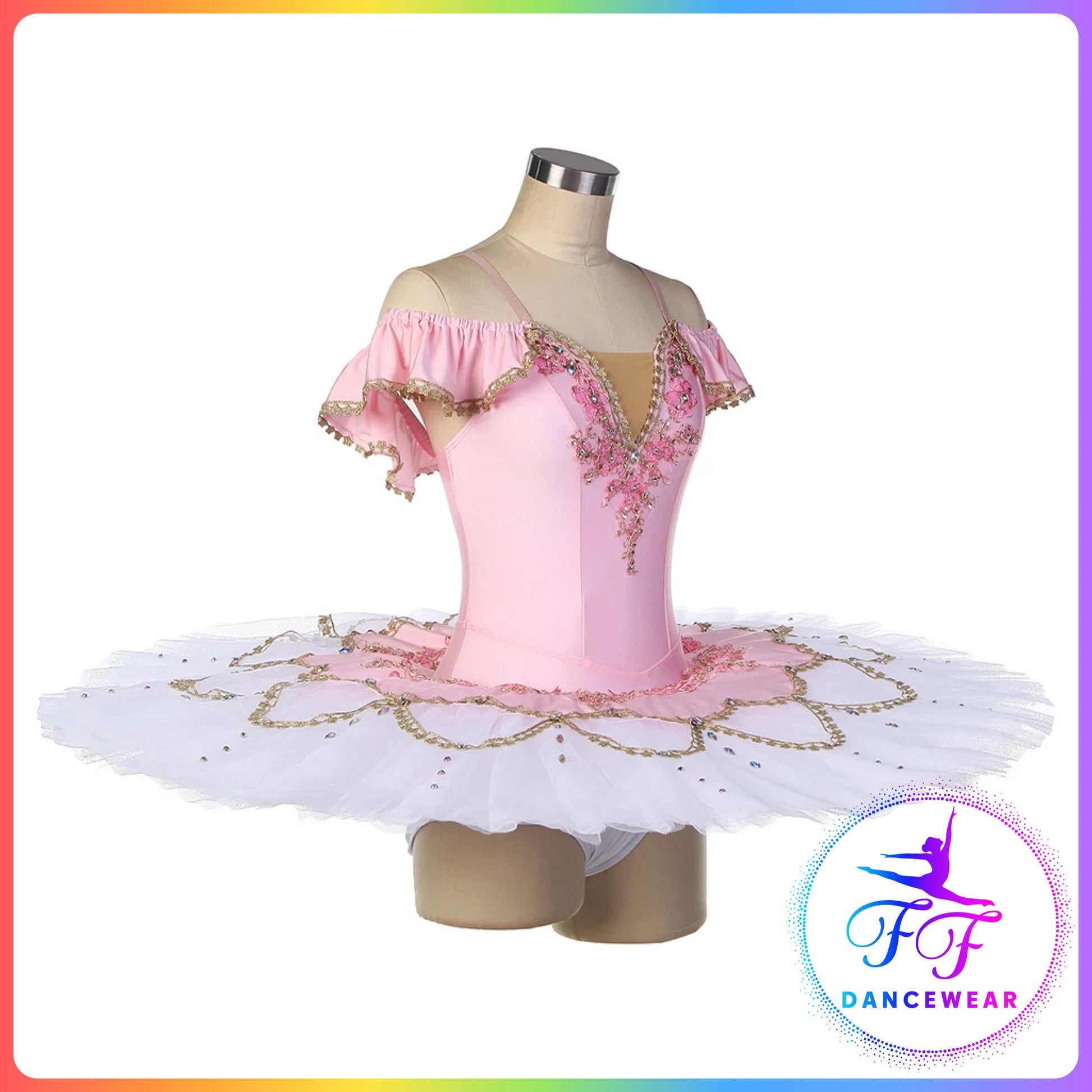 Off Shoulder Pink Stretch Professional Ballet Pancake Tutu (Child & Adult sizes)