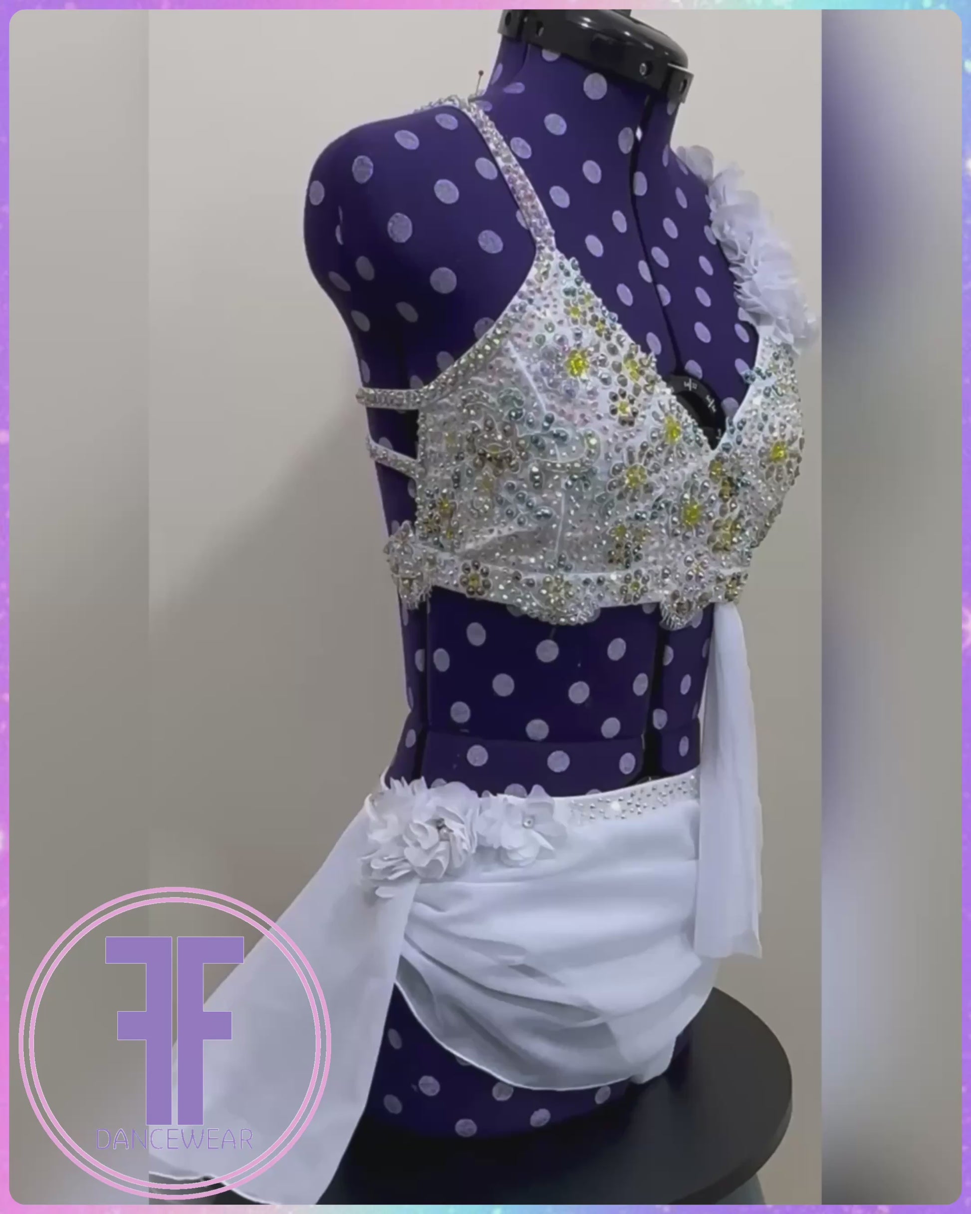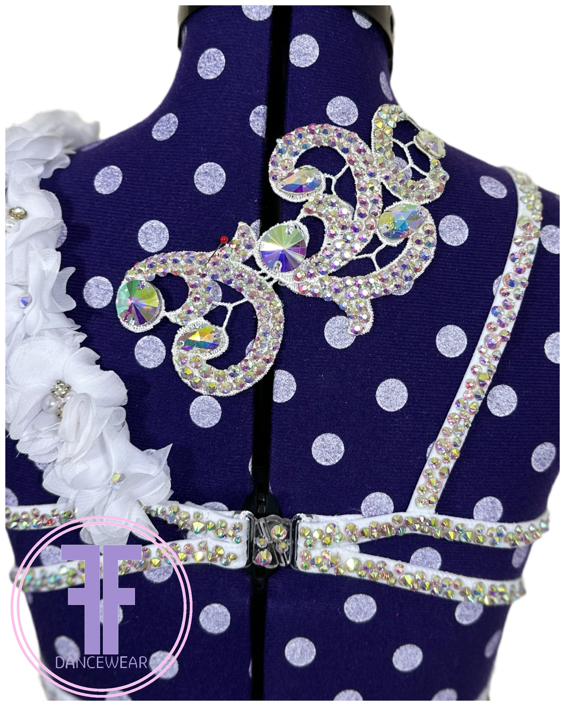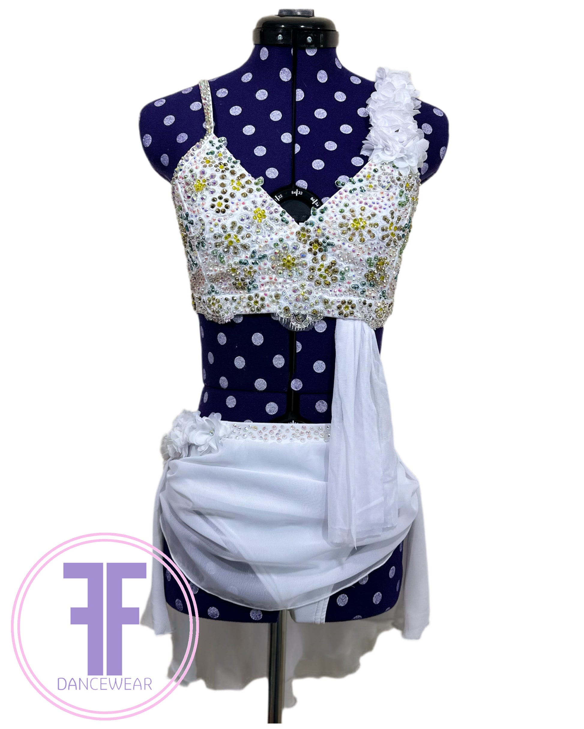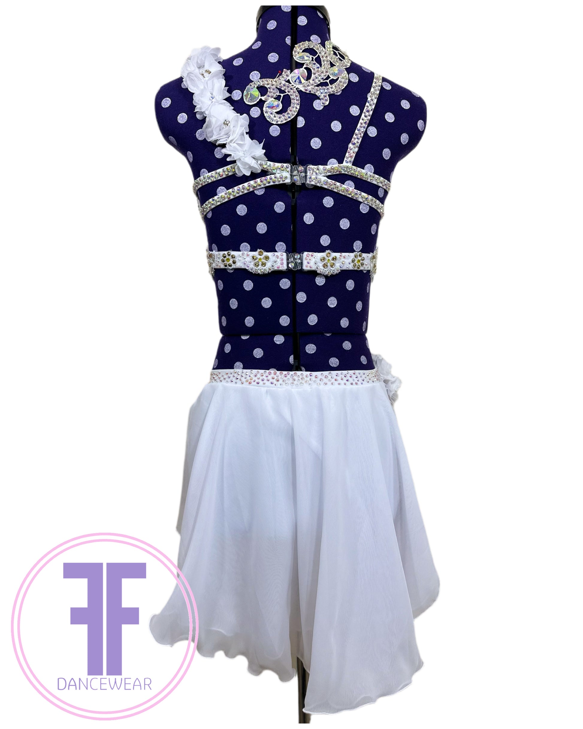 PRE-LOVED BESPOKE White Stoned Lyrical / Contemporary Dance Costume (Adult Extra Small)
