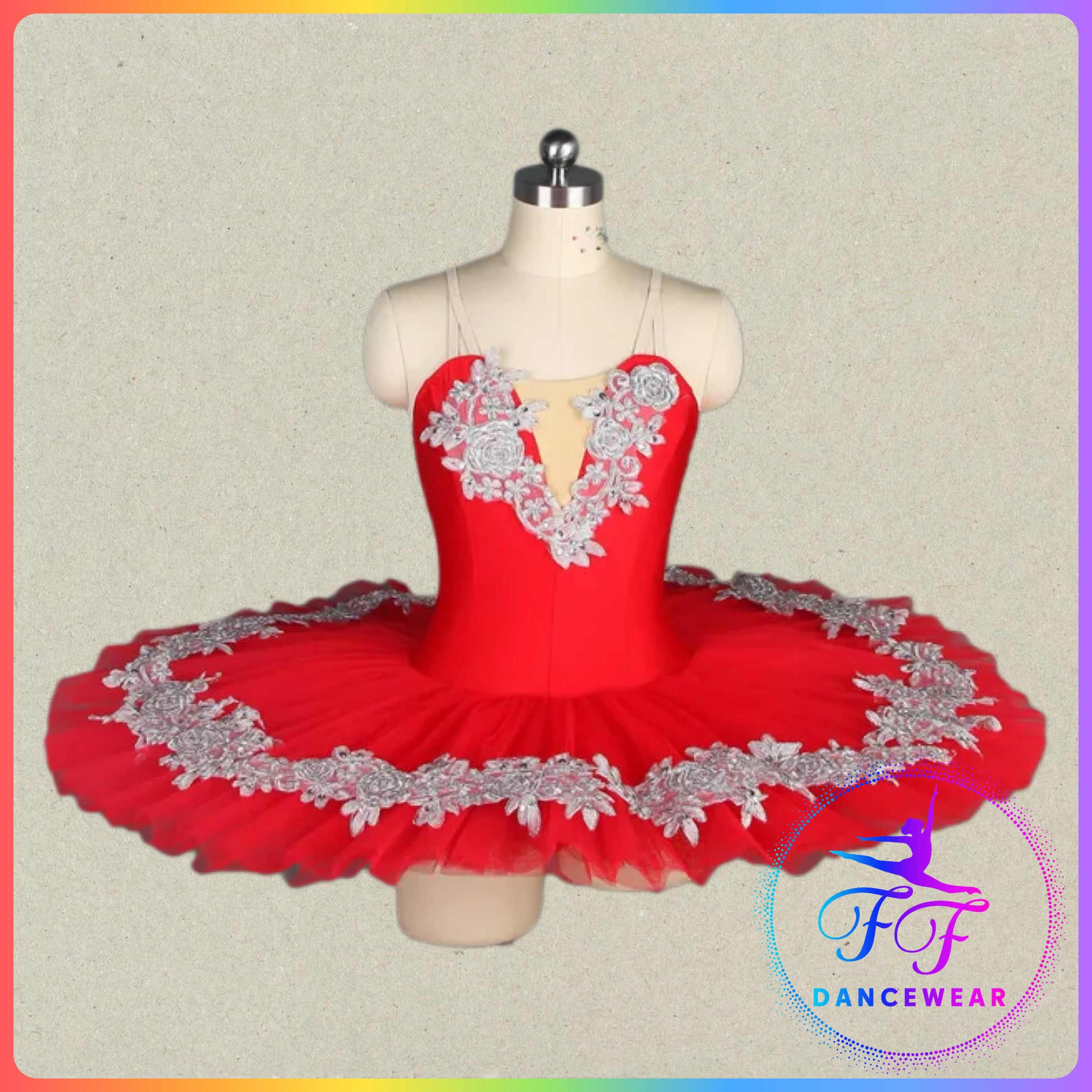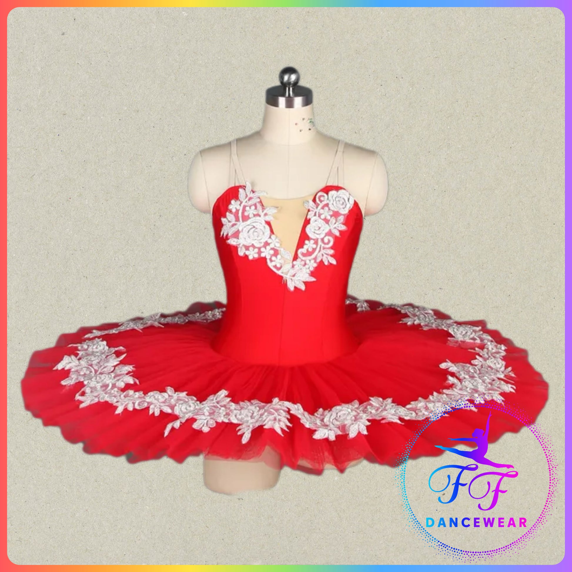 Red Floral Trim Professional Ballet Pancake Tutu (Child & Adult Sizes)