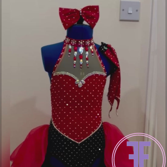 Red Heart & Black Stoned Modern / Jazz / Tap Dance Costume (7/8 yrs)