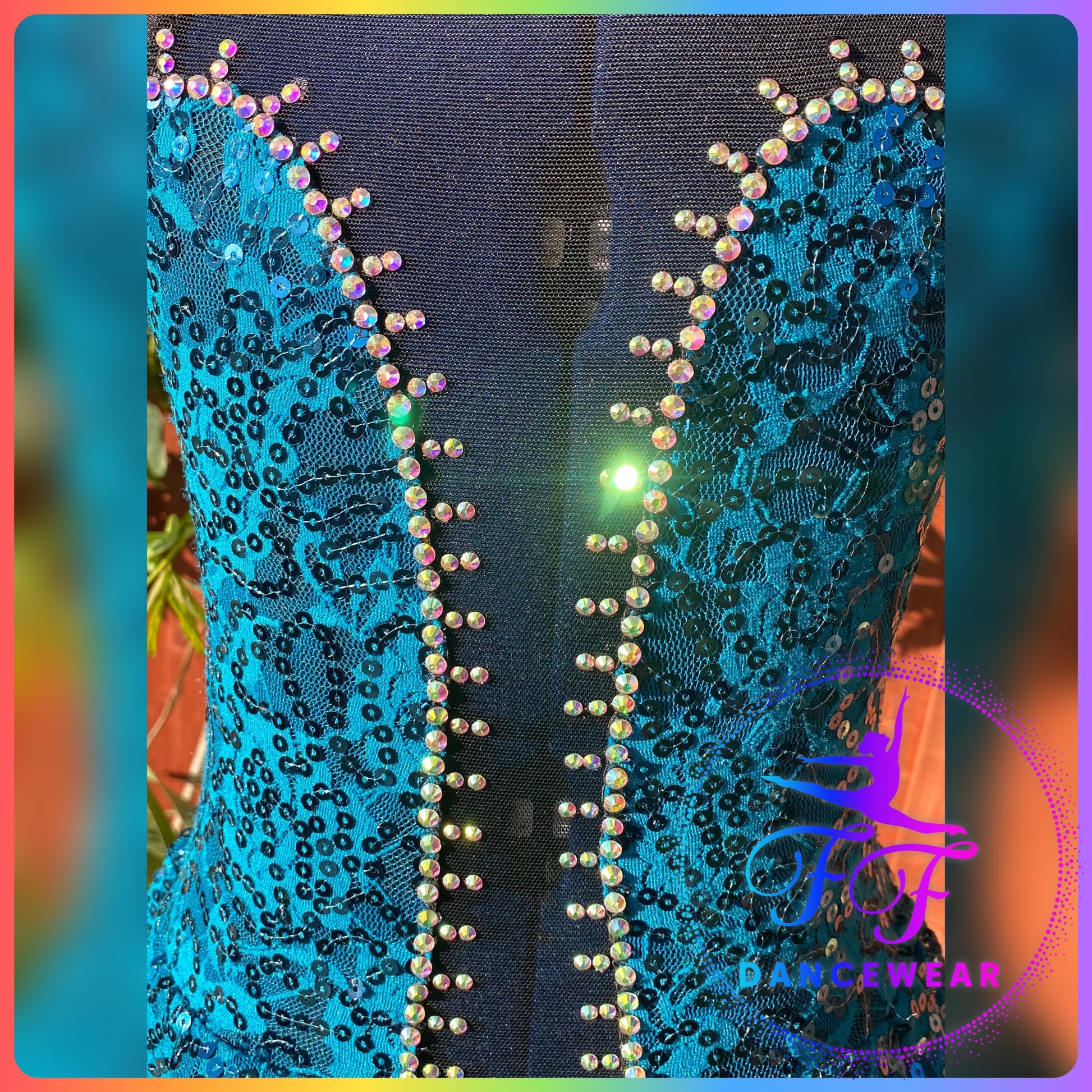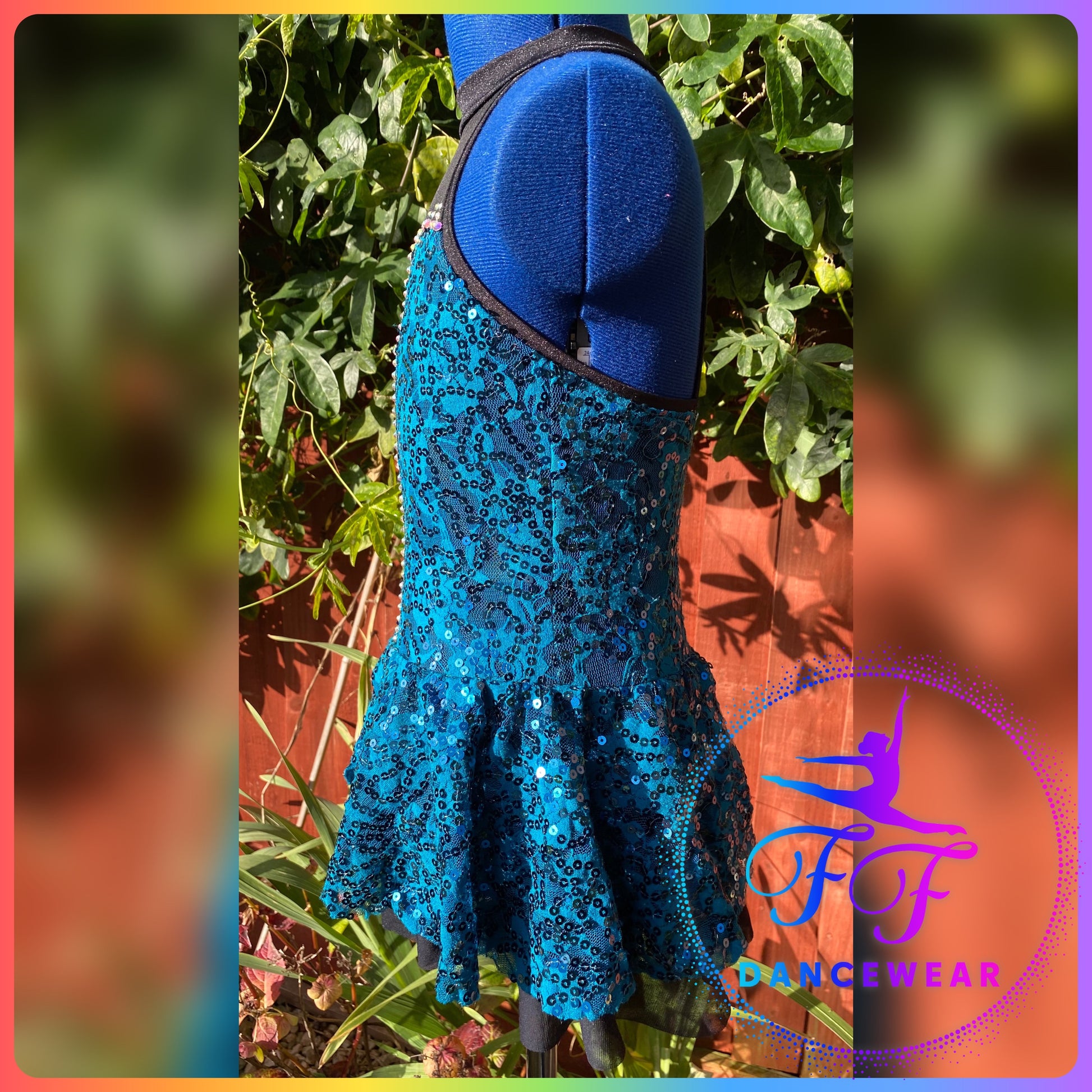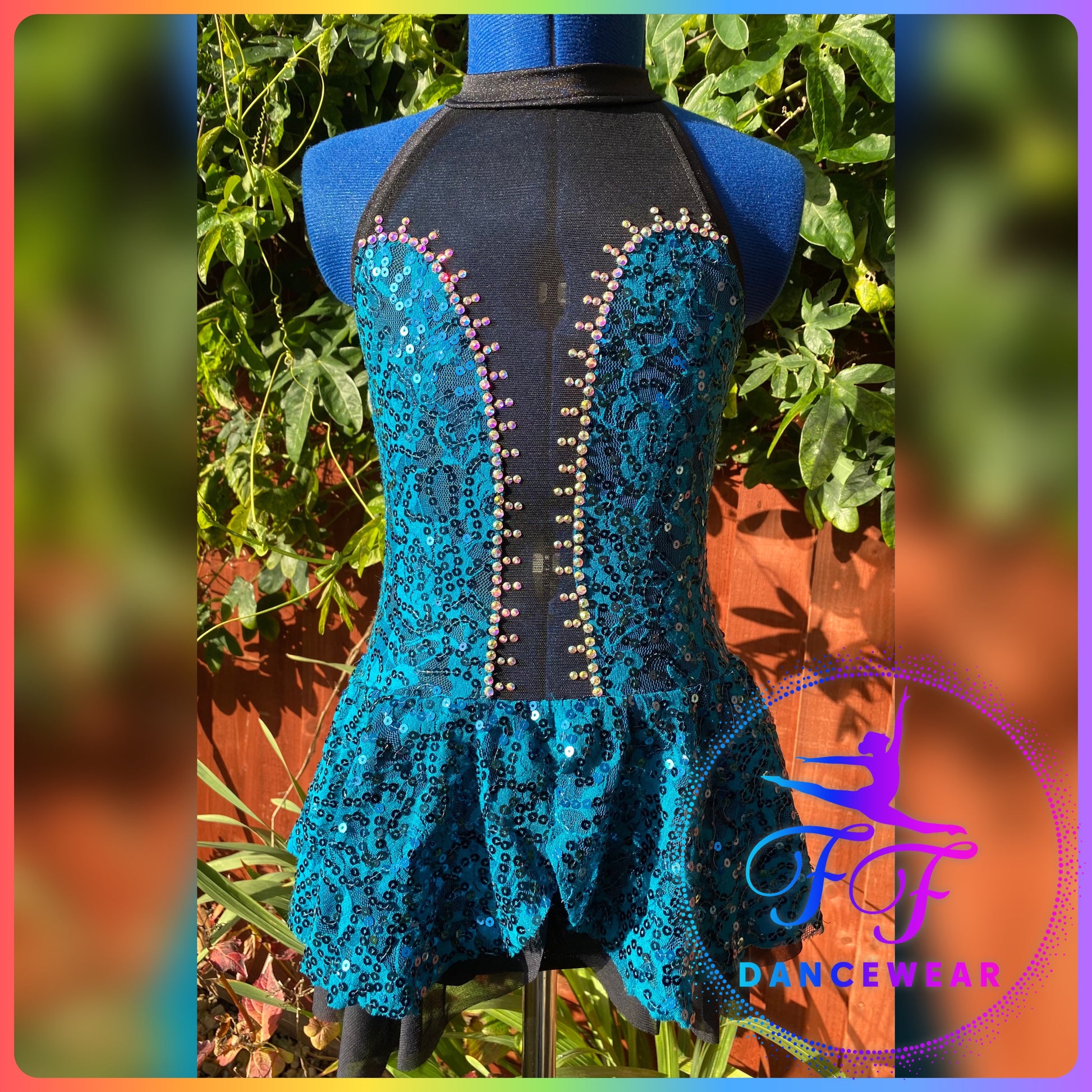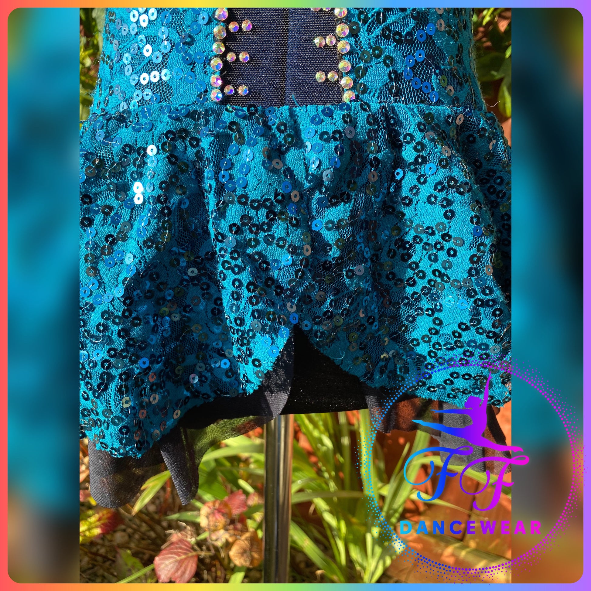 Teal Stretch Sequin Lace Bespoke Modern / Tap Dance Costume (Size 1 7/8yrs)