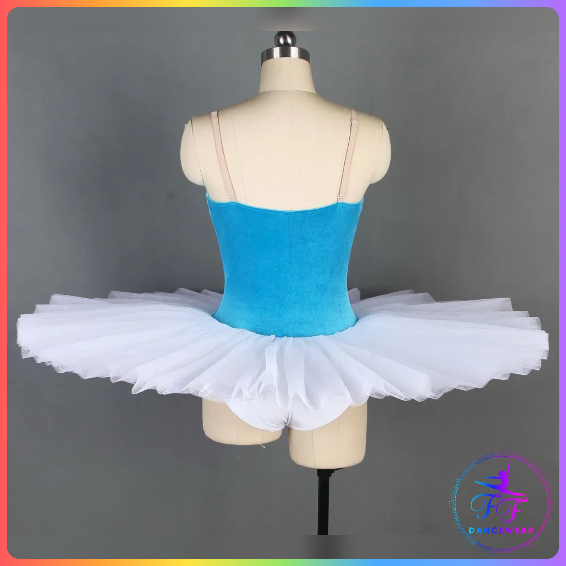 Turquoise Velvet & White Stretch Pancake Ballet Tutu