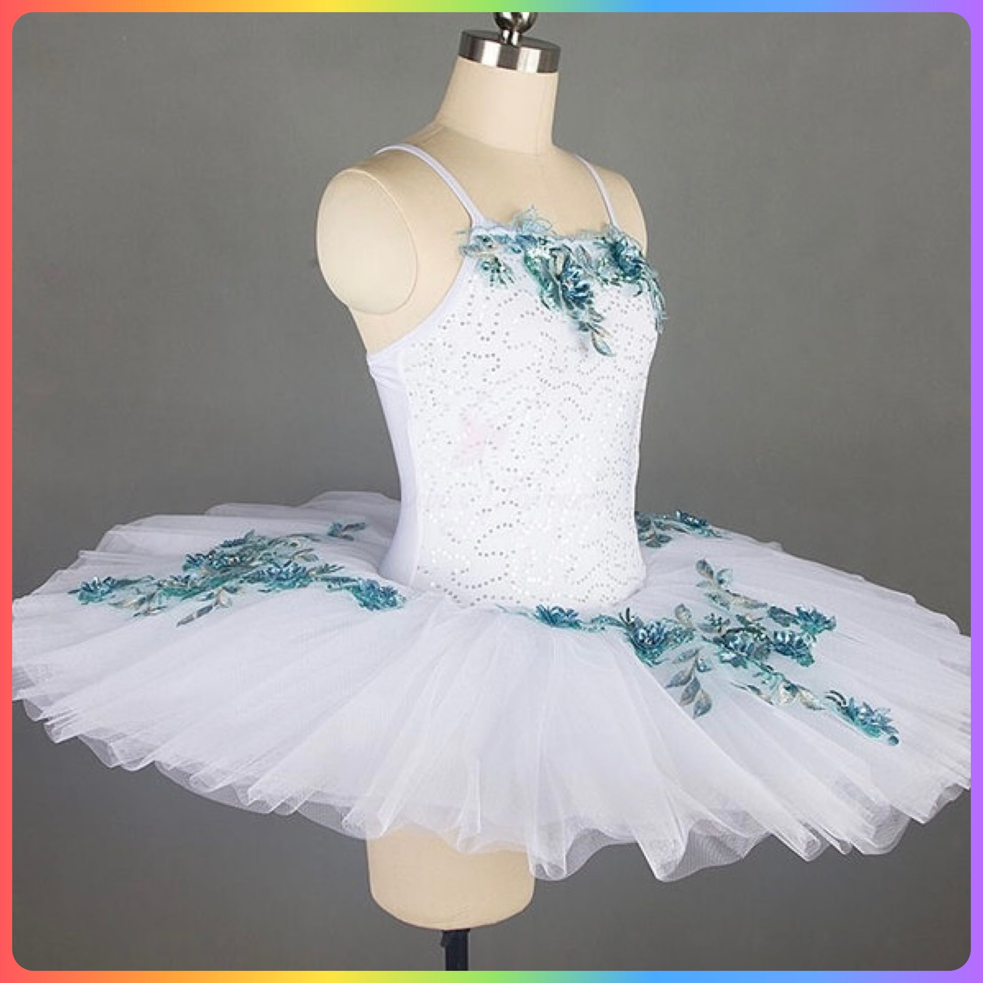 White / Blue Floral Professional Ballet Pancake Tutu (Child & Adult Sizes)