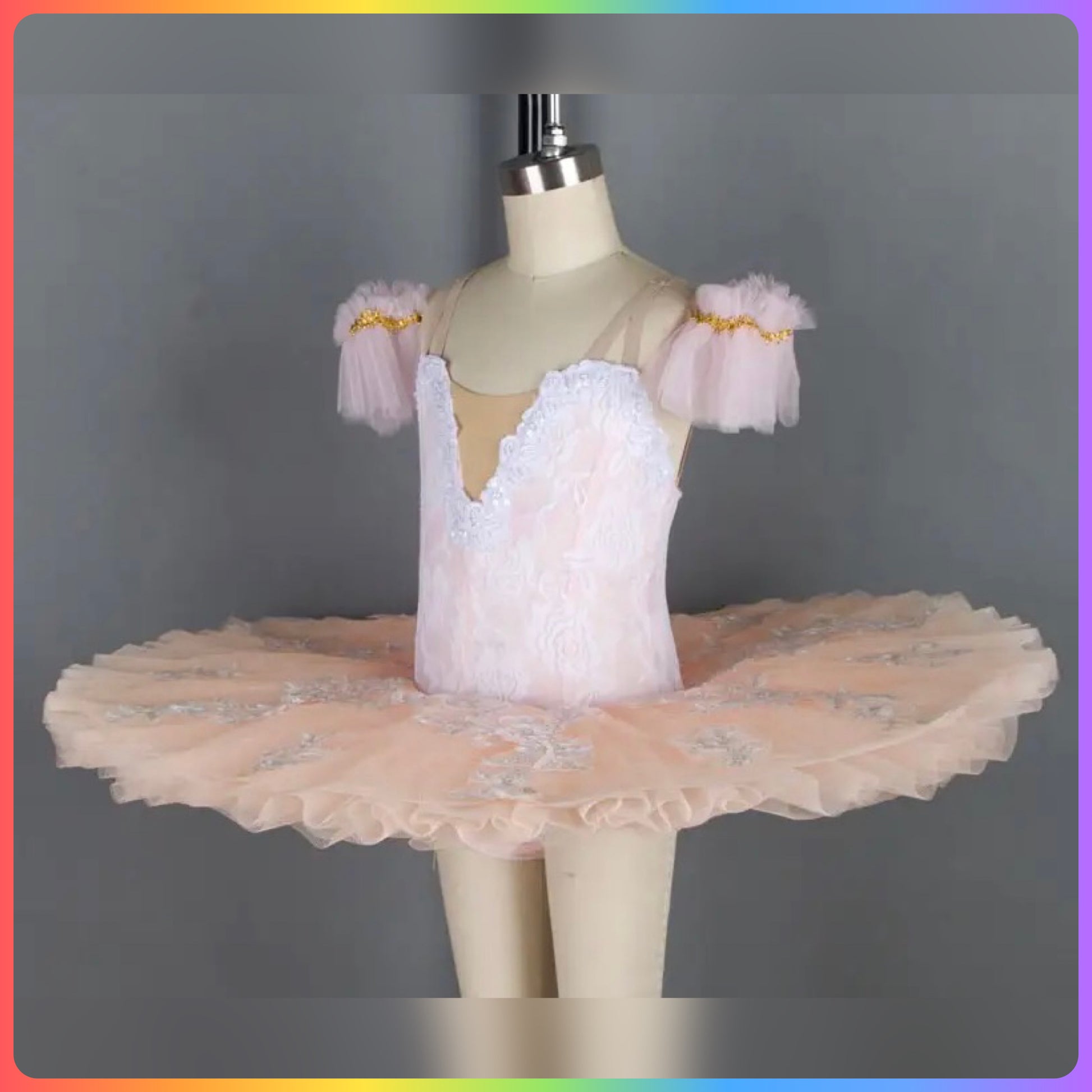 White Lace / Pink Professional Ballet Pancake Tutu (Child & Adult Sizes)