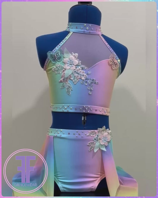 BESPOKE Pastel Rainbow Stoned Dance Costume for Lyrical / Contemporary (Age 7/8 yrs)