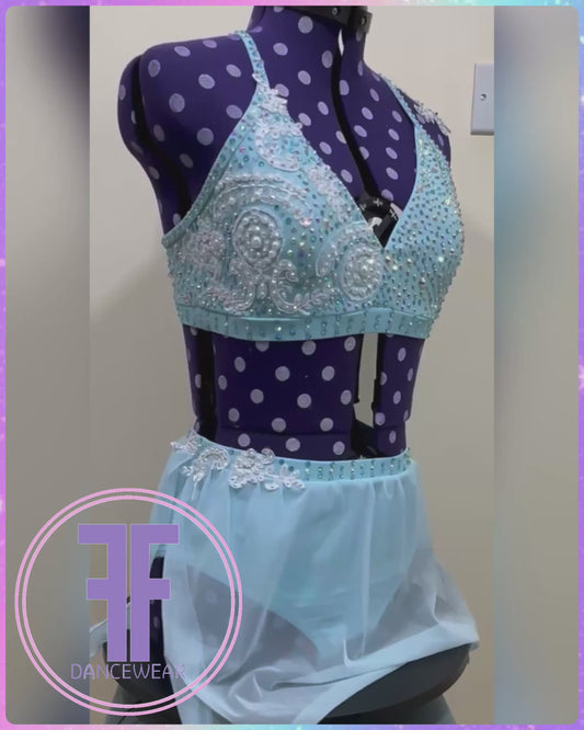 BESPOKE Baby Blue Stoned Lyrical / Contemporary Dance Costume (Adult Small)