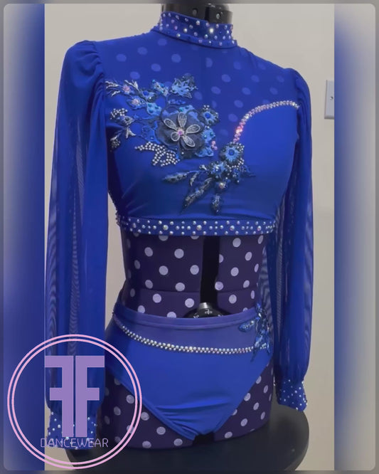 BESPOKE Royal Blue Stoned Lyrical / Contemporary Dance Costume (Adult Small)