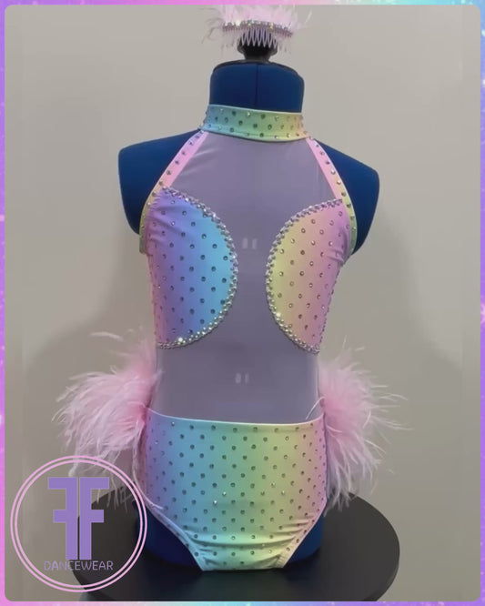 BESPOKE Pastel Rainbow Feather Bustle Stoned Modern / Tap Dance Costume (9/10 yrs)